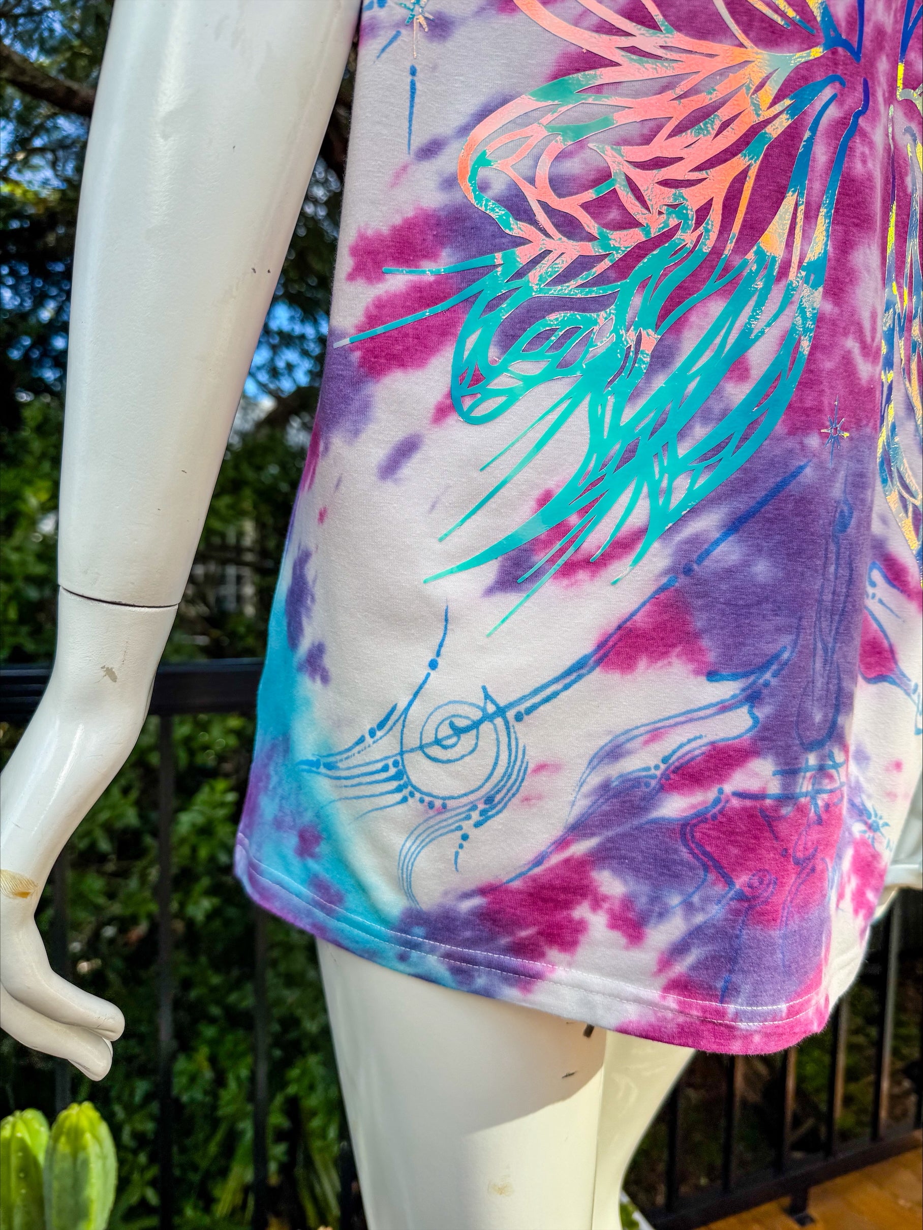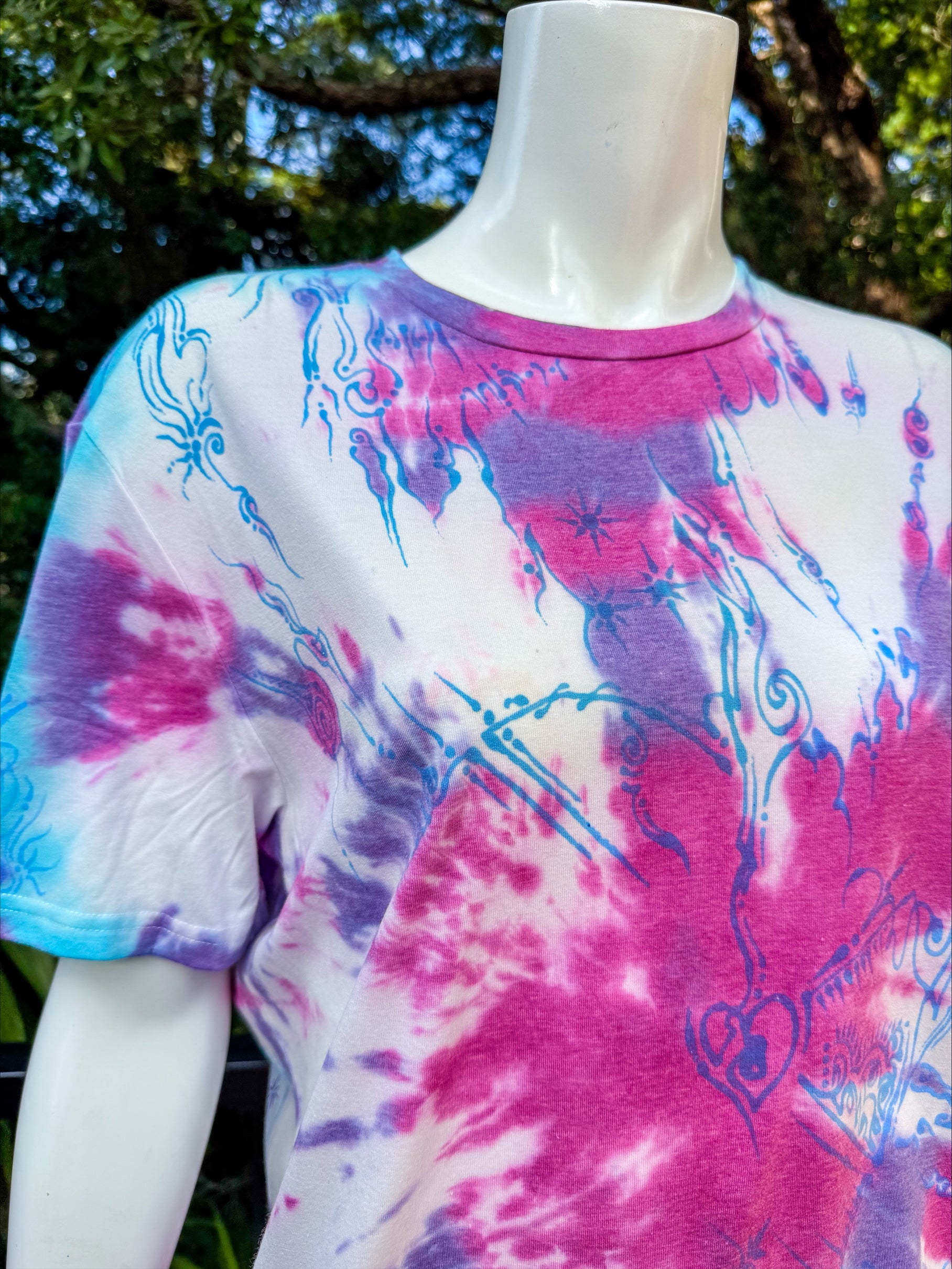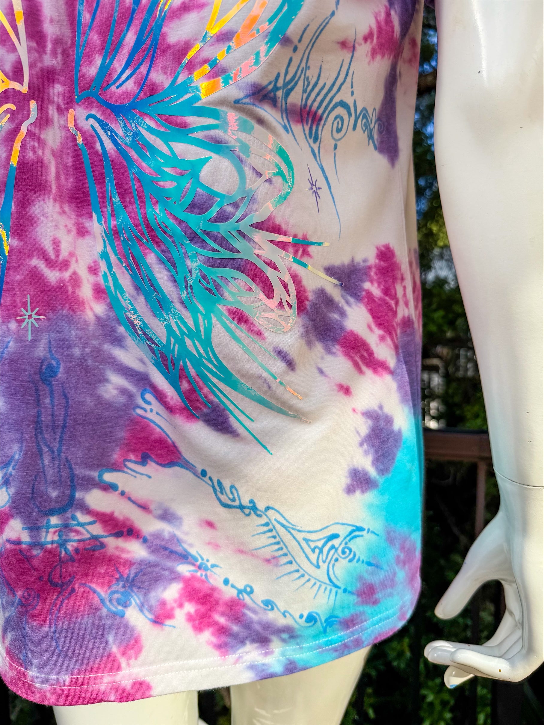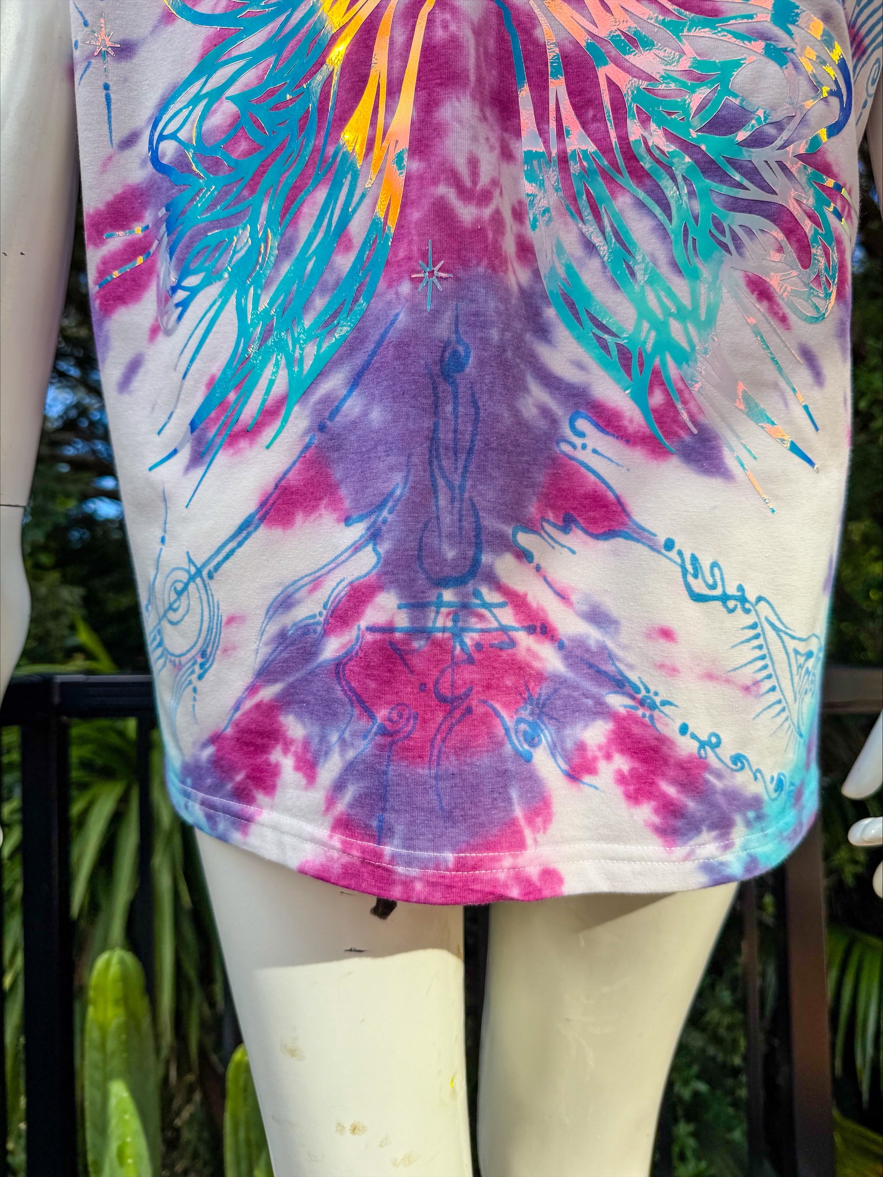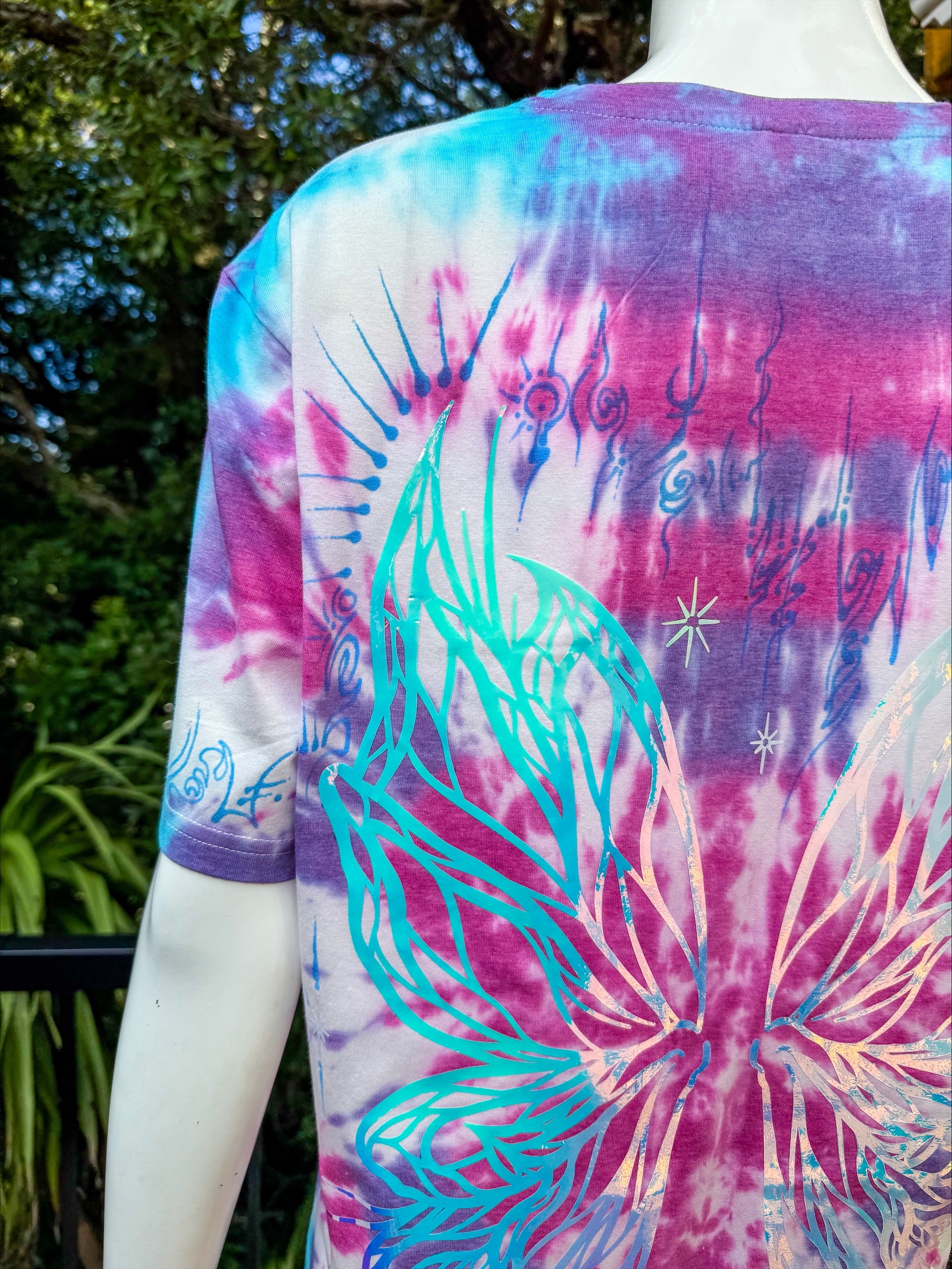The painted designs on these shirts illuminate under black light, as do the glow wings on the back,