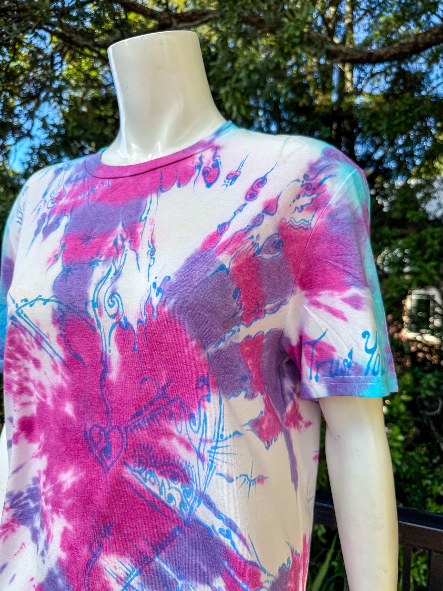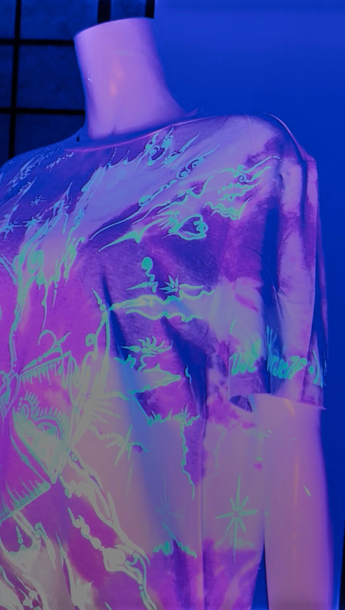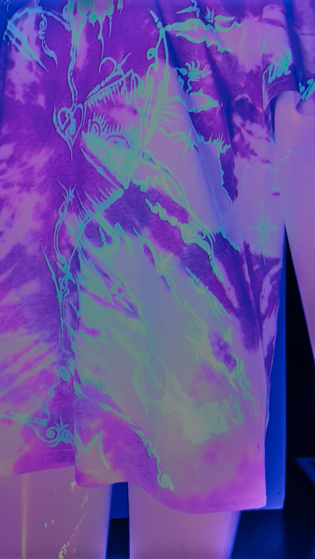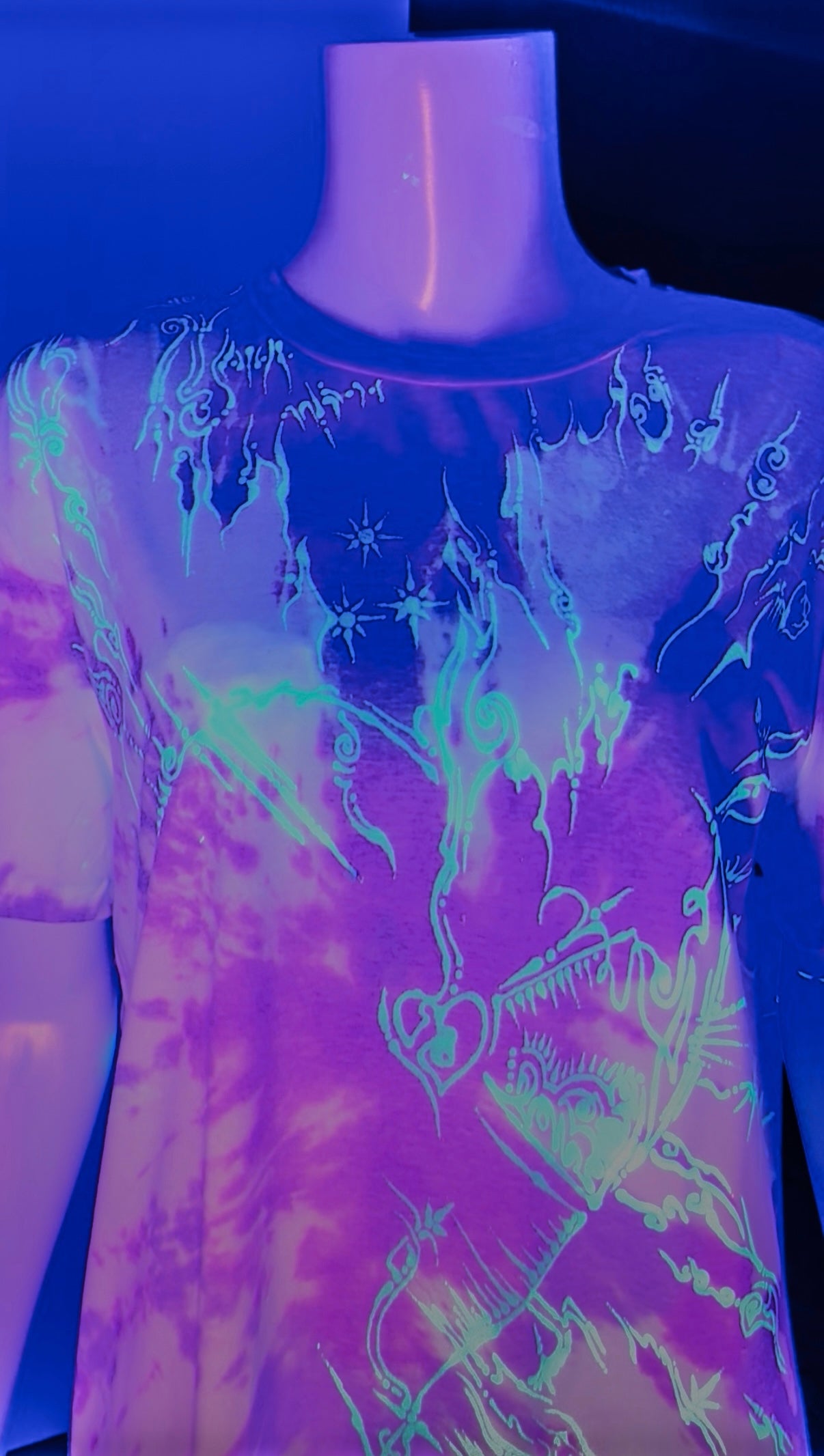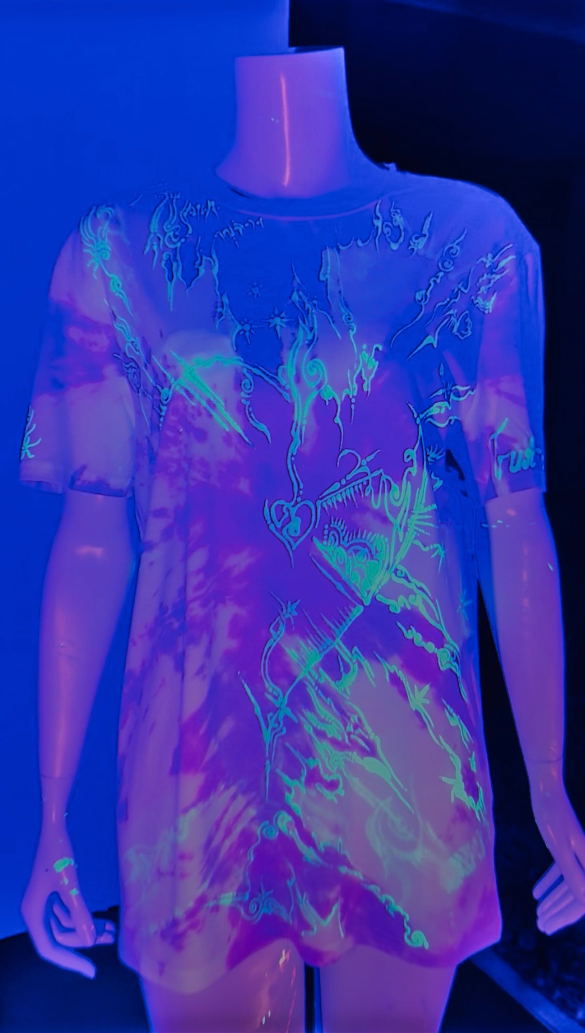Please note: photos of the dark UV effect are difficult to capture and so the UV colour will differ slightly in person. Luckily it looks better as the camera doesn't do it justice! *this specific shirt is a pastel blue UV effect.